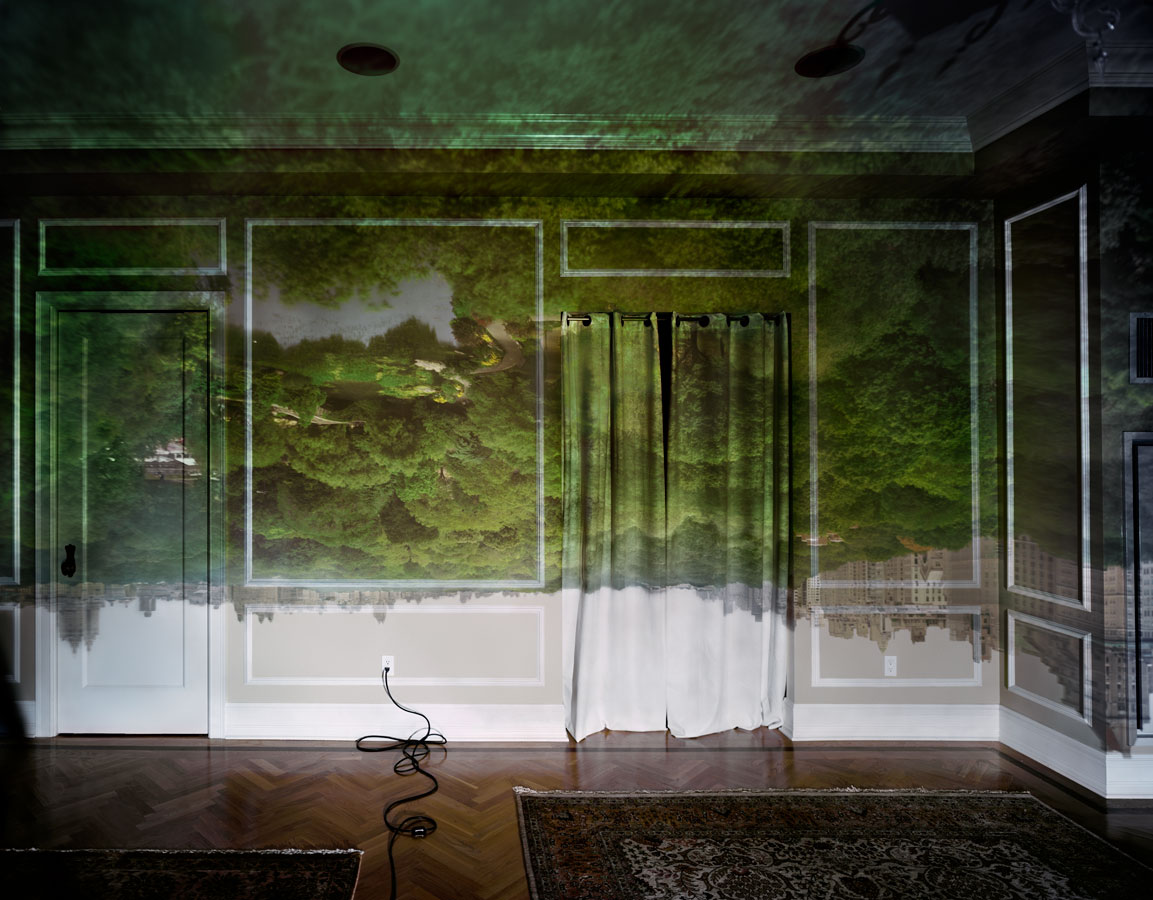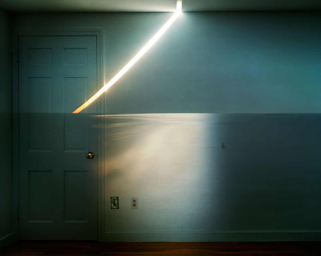In 1991, when I was on a sabbatical leave with time on my hands, I thought that it would be interesting to make a photograph of the actual effect of the camera obscura in a room. My first attempt was in the fall of 1991 in our living room in Quincy, Massachusetts. Getting the right exposure times at the beginning was very much trial and error. Eventually, I figured out that a decent exposure to render an acceptable looking 4×5 negative was around eight hours. I felt as if I had invented a new kind of photography. Without knowing it I made a sort of picture that had never been made before. I was floating — still am.