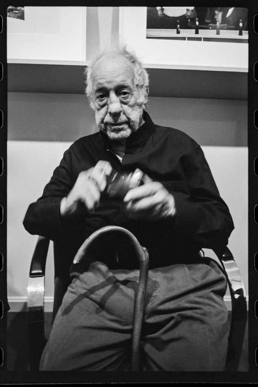 Robert Frank was having a show opening in the city, and I had no idea about it. A good friend of mine who works at K&M Camera on Broadway texted me and informed me about the show. My first question to her was, is Robert going to be there? The owner of K&M happens to be best friends with Robert, so she knew that he would show up. I had a dinner to be at this same night, and the whole day I was thinking about how I could get out of it. I knew that this was the one day that I could meet one of my favorite photographers. I’m always the guy that never shows up to events, so I felt that I had to be at this dinner since I already confirmed. I went to the dinner and found out that the event didn’t really start until an hour after I was already there. There was free drinks so I had a couple glasses of whisky and then realized that I was missing out on the opportunity of a lifetime. I left the venue and went uptown as fast as possible. When I arrived at Pace (the gallery) I got into the elevator and headed to the 10th floor. There was a guy in the elevator talking about how Robert was there and being pretty nice about talking to people. As soon as I got to the 10th floor it was like a path opened up just for me to meet him. It was amazing. He was the second person I talked to after I walked in. I first spoke to a friend of mine who was standing at the door. Later in the evening, Robert was sitting down and that’s when I decided to make a portrait of him. We didn’t exchange many words, I didn’t have much to say. I’m learning as much as I can through his life’s work, what else can you ask of the man? I personally don’t think I learn much from teachers. I learn from studying great work. That portrait that I took of him taught me a lot. You see, he’s looking right at me, I photographed him with a 28mm, so I’m very close, and his hands and camera are in a complete blur. It’s a reminder to keep going, never stop. Here he is 90 years old and still working at it. It was great to be in his presence.
