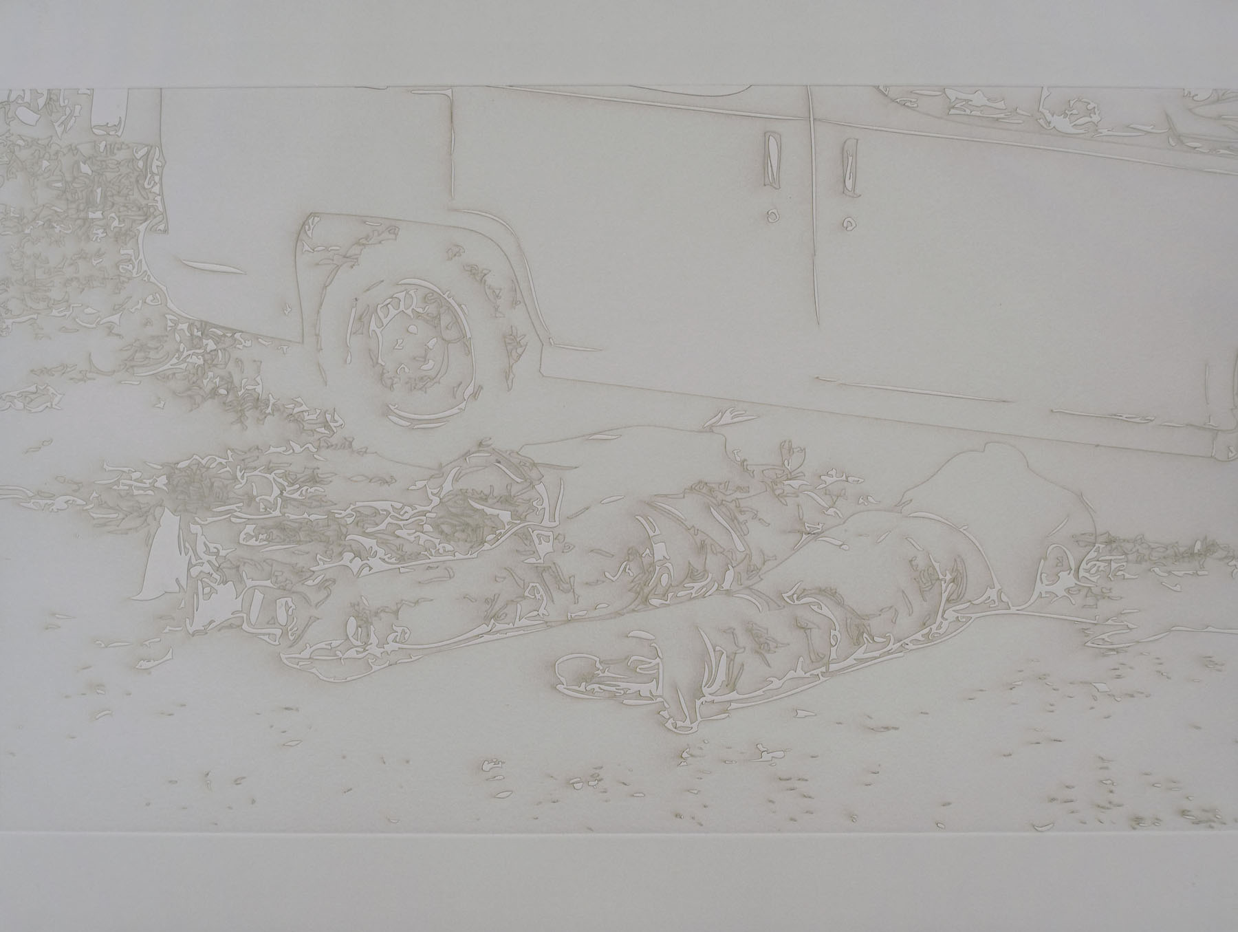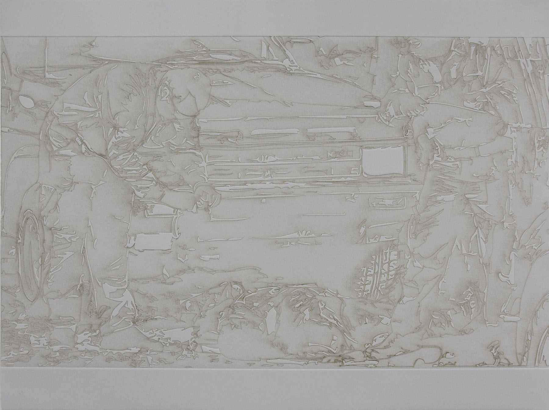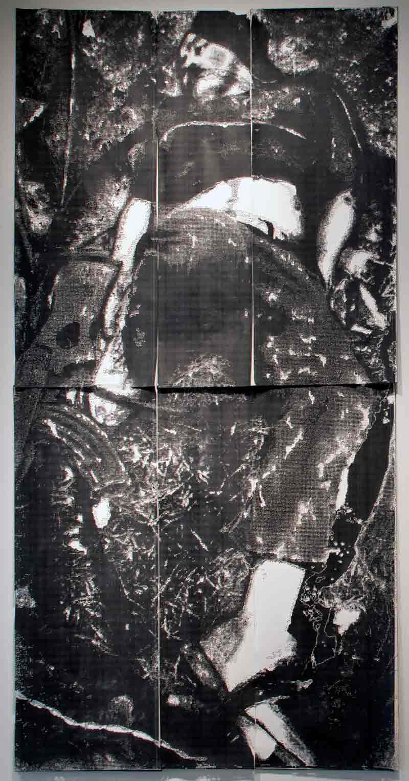 Many of the photographs are almost identical in how they capture the crime scenes; this is not because the photojournalists are following a format when taking pictures, but rather because the circumstances of the events are very similar. This is why I knew I couldn’t just use them in their original form, I had to alter them and bring a different kind of rawness and crudeness otherwise most people would try to avoid seeing them again; but I feel its necessary to do so. I am only presenting them in a different format, hoping that this time they will have a greater impact and help bring more awareness of what the country and its citizens are facing. I see the current cultural memory in México as sites of disaster, and as ways to understand the persistence of the state of terror in people’s lives, bodies, and subjectivities. I am trying to indicate to the viewer the moment of transformation from image to human, both seeing and feeling the disappearance of a human being into the sphere of the purely visual.