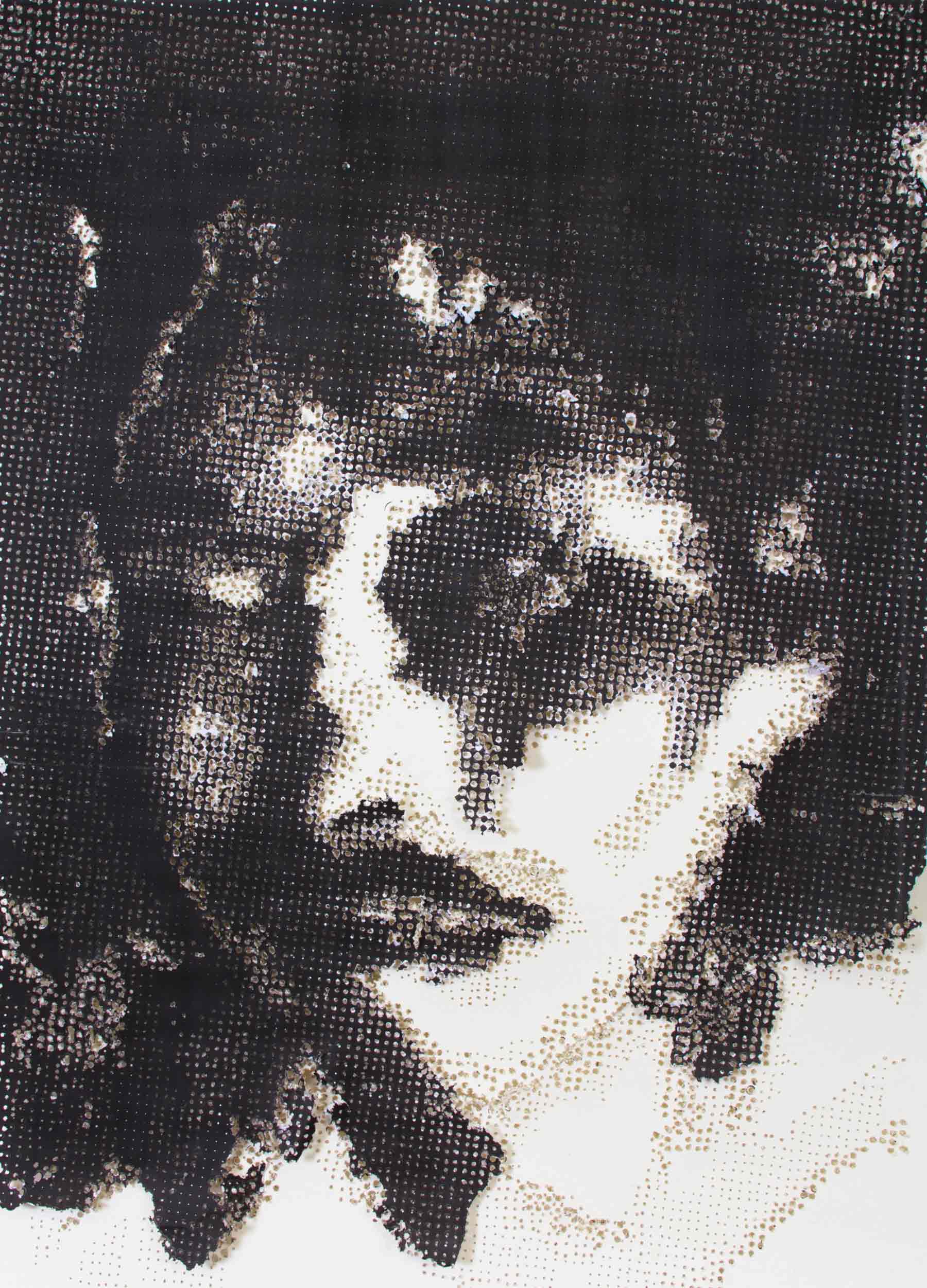 I began exploring this subject matter with a previous body of work where the photographs were manipulated to a point of distortion through another process. In that series I was exploring the idea of trauma, recollection and fragmentation of memories, what it meant to see and live with those kinds of images in your head. But then, I felt a need to humanize these people, to reflect on the loss and transformation that the country is going through. We cannot see these events just as facts and statistics; we need to remember that they are human beings leaving the world in a very violent way, which is why I concentrated on close-ups, to make the events more personal, more relatable. I realized that the viewers had to be confronted with the image of a corpse to understand and reflect on their own mortality. I did not wanted to shock or disgust the viewer by using a gory approach though; I had to slow the readability of what these portraits represent, and so I cropped them and striped all of the color to achieve this, knowing full well that the particular process I was using to create the pieces would encapsulate and represent the violence these images come from.
