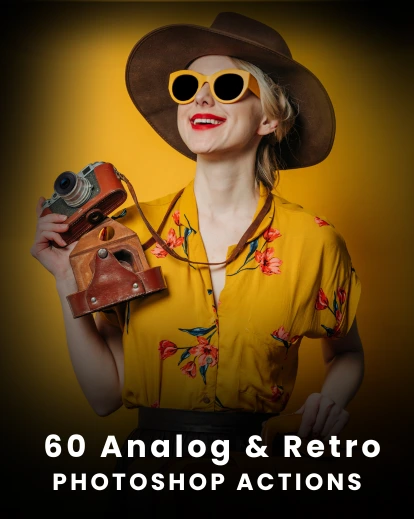 Let your edits tell stories from the past with the 60 Analog & Retro Photoshop Actions from Enhance My Photo. This curated set of one-click effects turns flat, modern images into rich, evocative visuals inspired by the golden eras of film.