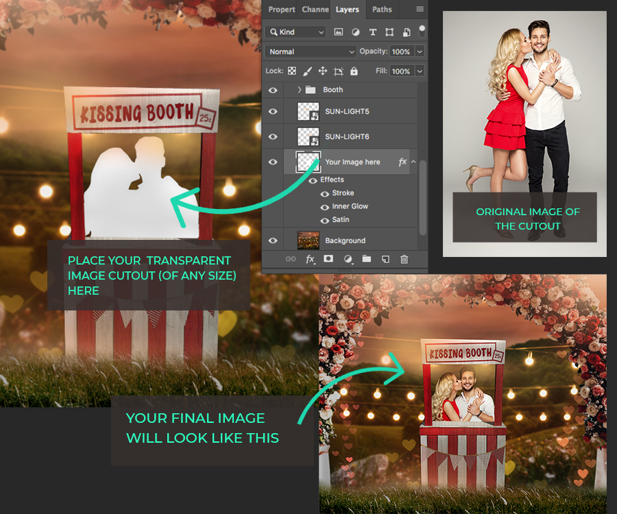 Wide selection of props in the background: The intended love aspect is suitably accentuated by appropriate props; like, flowers, chocolates, etc. – You will find them amply showcased in these romantic digital backdrops.